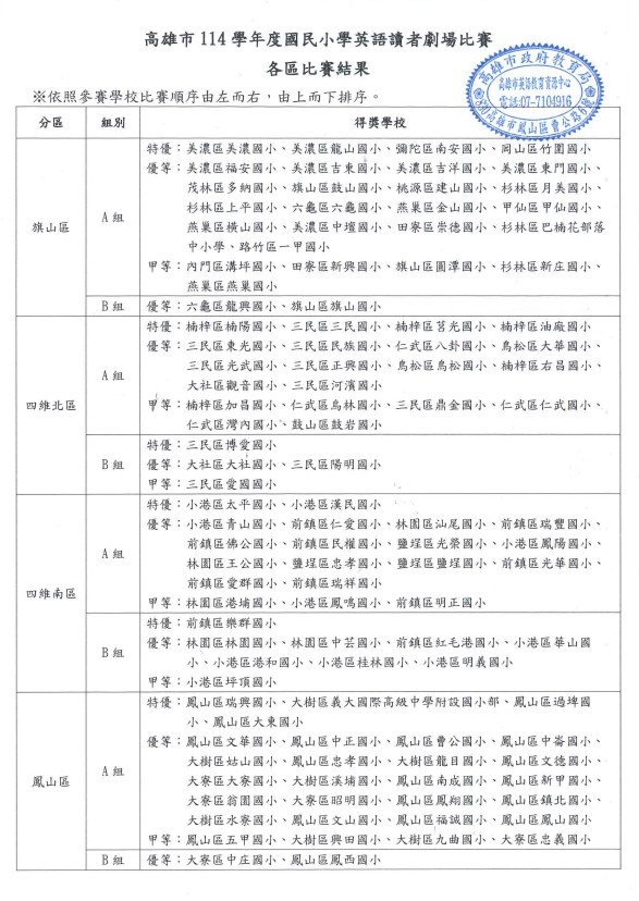 114學年度高雄市英語讀者劇場比賽